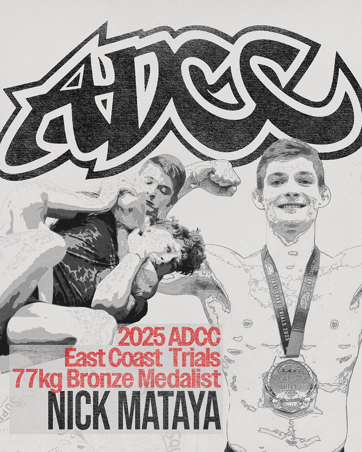As an active jiu-jitsu competitor myself I took special interest in the buzz and hype around the tournaments and wanted to express and record the history being made through my own artistic lens. What better way to do so than with posters! I decided to make posters for each region of trials tournaments that featured the athletes that most stood out or impressed me.